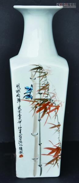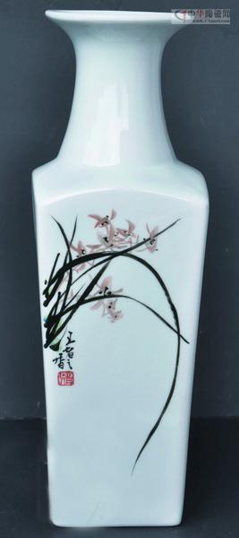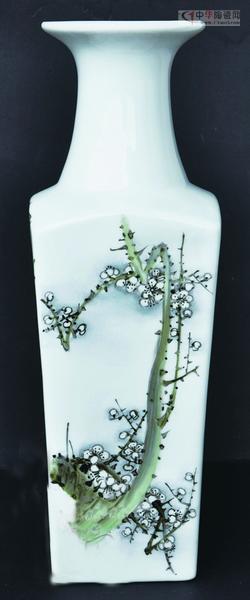 中國畫中的梅、蘭、竹、菊“四君子”常被用來表現(xiàn)清高脫俗的情趣,其君子之風更為歷來的國畫家所偏愛。黃聰敏先生的寫意花鳥瓷畫“四君子”,風格注重傳統(tǒng)的筆墨意趣,但不沿襲前人的模式,而是以現(xiàn)代審美視角,把畫面情景置于特定的歷史氛圍之中,著重表現(xiàn)“四君子”多彩的自然生命活力,在創(chuàng)作中追求詩意畫境,講究筆情墨趣,于虛實相間中創(chuàng)造空間美: