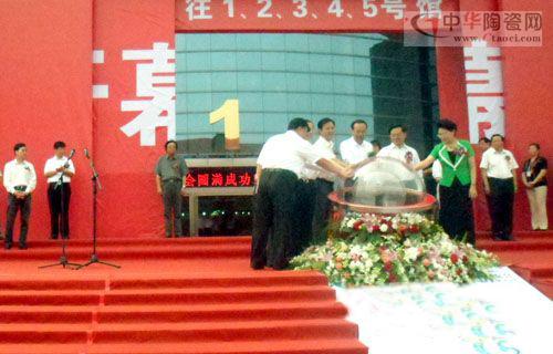 景德鎮(zhèn)陶藝大師席新明、楊曙華、蔡玲玲、王采在主席臺(tái)與中央、吉林省等領(lǐng)證導(dǎo)共同見第七屆中國(guó)(長(zhǎng)春)民博會(huì)啟動(dòng)儀式