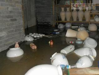 8月10日,臺(tái)風(fēng)“海葵”給景德鎮(zhèn)帶來了一場(chǎng)強(qiáng)降雨,降雨引發(fā)的洪水更是造成了不小的損失。在這場(chǎng)洪水中,不少陶瓷商家都受到了影響。陶藝一條街、曙光路古玩市場(chǎng)因?yàn)榈貏?shì)較低,幾乎全部被淹,其間店鋪無(wú)一幸免。一些陶瓷手工小作坊,由于洪水的浸泡,不僅瓷坯化為了泥漿,就連窯爐等機(jī)器設(shè)備都受到了不同程度地?fù)p壞。