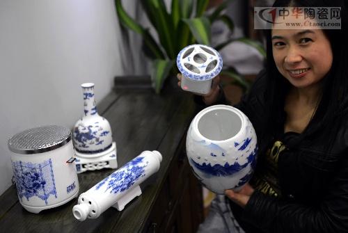 景德鎮(zhèn)(江西),2012年11月2日 陶瓷工藝音箱亮相瓷都景德鎮(zhèn) 11月2日,一名工作人員在展示傳統(tǒng)儲(chǔ)物罐外形的音箱! ∪涨,一種新型陶瓷工藝音箱亮相江西景德鎮(zhèn)。該音箱采用全陶瓷材料制成,配青花、粉彩、手繪、釉中、釉上等景德鎮(zhèn)傳統(tǒng)工藝多種裝飾形式,并支持FM調(diào)頻收音機(jī)、支持插卡播放MP3、WMA音樂(lè)格式及無(wú)線(xiàn)遙控。