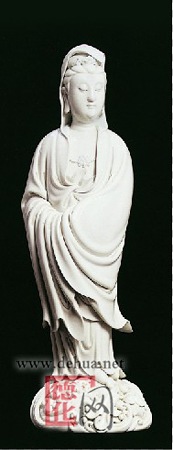 山石題材是德化白瓷雕塑中常見的要素之一,最常見的是出現(xiàn)在觀音立像中。山石題材使用的年限也很長,自明至清、民國綿延不斷。所以它也具備了分期斷代的基本條件。