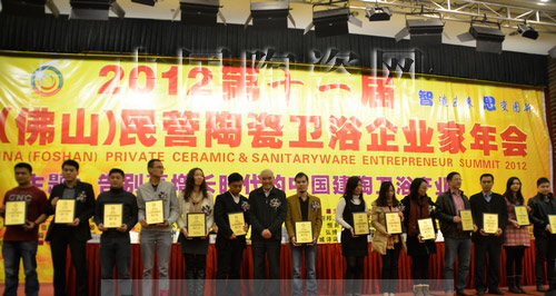 近日,佛山市施瑯陶瓷喜獲“2012年度十大建陶明星企業(yè)”和“2012年度優(yōu)秀建陶衛(wèi)浴新產(chǎn)品”殊榮。據(jù)悉,這是佛山市工商業(yè)聯(lián)合會、佛山市總商會主辦的2012第十一屆中國(佛山)民營陶瓷衛(wèi)浴企業(yè)家年會活動,佛山施瑯陶瓷受邀參加了此次年會活動,憑借堅厚的企業(yè)實力,從多家企業(yè)中脫穎而出,獲得了兩大榮譽證書。