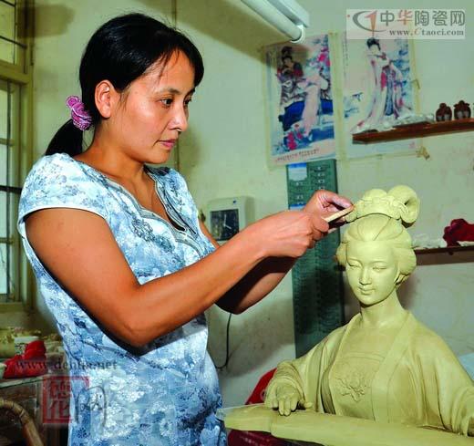 說陳麗玲是瓷苑世家,一點都沒錯。她的祖父是中國當(dāng)代著名雕塑藝術(shù)家陳其泰,她的父親是中國當(dāng)代著名雕塑藝術(shù)家陳德卿,她與一對兄弟陳恭、陳偉是德化昌德陶瓷雕塑的第三代傳人。她,不折不扣是瓷苑世家一枚淡然優(yōu)雅的瓷花。