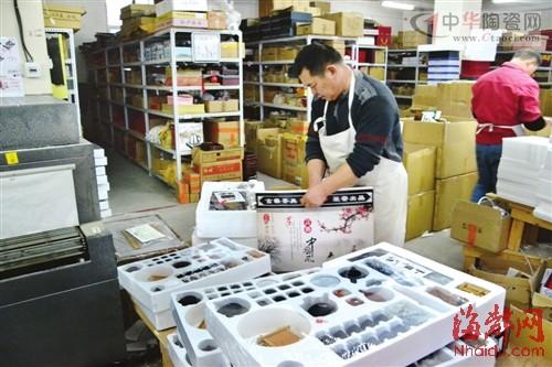 一家德化陶瓷企業(yè)工人正為當(dāng)日成交的網(wǎng)絡(luò)訂單包裝發(fā)貨