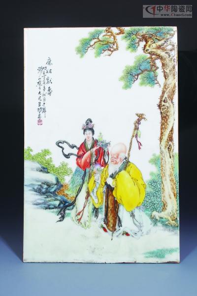 王大凡粉彩麻姑獻(xiàn)壽瓷板