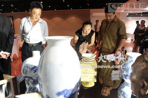 當(dāng)日14時(shí)30分,工作人員宣讀完拍賣規(guī)則后,拍賣正式開始。本次拍賣采取無(wú)底價(jià)競(jìng)拍,應(yīng)部分藝術(shù)家的要求,個(gè)別拍品設(shè)置保留價(jià)。義拍的第一件作品是江西省工藝美術(shù)大師、江西省高級(jí)工藝美術(shù)師余欣的青花瓷瓶《江南》,很多競(jìng)拍人紛紛舉牌競(jìng)價(jià),但最終價(jià)格沒(méi)有達(dá)到3萬(wàn)元的保留價(jià),該作品流拍。