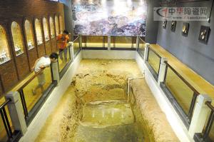 位于荷城靈龜園內(nèi)的龍窯遺址陳列館,在花木掩映中,古樸的瓦檐屋頂從遠(yuǎn)處便一眼可見(jiàn)。記者進(jìn)入陳列館內(nèi),首先可見(jiàn)詳細(xì)的遺址介紹說(shuō)明,整個(gè)陳列館分上下兩層,上層擺放碗、碟、盆、缸碗、碟、盆、缸、耳罐、耳杯等五百多件文物,下層展現(xiàn)整個(gè)窯址發(fā)掘時(shí)的樣貌。