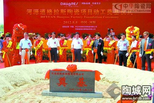 投入巨資打造的約2000畝的道格拉斯(河源)陶瓷生產(chǎn)項目,8月8日在河源市東源縣駱湖鎮(zhèn)新型環(huán)保建材基地舉行盛大的奠基開工慶典儀式。中共河源市委副書記、市長彭建文,中國建筑衛(wèi)生陶瓷協(xié)會副會長、秘書長繆斌,中共東源縣委書記、縣人大常委會主任葉少軍,中共東源縣委副書記、縣長何廣延,道格拉斯·中國董事長鄧柱標(biāo),意大利道格拉斯陶瓷有限公司商務(wù)總裁Mr.jyrki Luomala,以及河源市委市政府相關(guān)領(lǐng)導(dǎo),東源縣委縣政府相關(guān)領(lǐng)導(dǎo),駱湖鎮(zhèn)及東源其他各鄉(xiāng)鎮(zhèn)相關(guān)領(lǐng)導(dǎo),中國建筑衛(wèi)生陶瓷協(xié)會、廣東省陶瓷協(xié)會及佛山市陶瓷行業(yè)協(xié)會相關(guān)領(lǐng)導(dǎo),廣東省質(zhì)量檢驗協(xié)、佛山質(zhì)檢中心相關(guān)領(lǐng)導(dǎo),新聞媒體界、金融界、設(shè)計界等各界嘉賓,意大利道格拉斯總部領(lǐng)導(dǎo),道格拉斯·中國領(lǐng)導(dǎo)及全球經(jīng)銷商及合作伙伴、供應(yīng)商伙伴共約700多人出席本次奠基儀式。