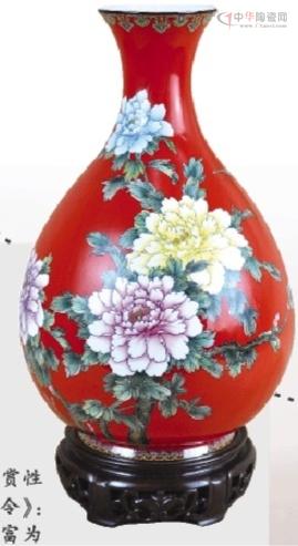 玉壺春瓶又叫玉壺春壺,是宋瓷中具有時(shí)代特征的一種典型器物,從當(dāng)時(shí)的一種裝酒的實(shí)用器具,后來(lái)逐漸演變?yōu)楝F(xiàn)在的具有觀賞性的陳設(shè)瓷器。“榮華富貴”一詞出自《管子・重令》:“而群臣必通外請(qǐng)謁,取權(quán)道,行事便辟,以貴富為榮華以相稚也,謂之逆。”多用來(lái)比喻興盛或顯達(dá)。榮華富貴圖是我國(guó)傳統(tǒng)的吉祥圖樣之一。它以芙蓉花、牡丹為主,“蓉”與“榮”同音,花即華,牡丹為花中王,舊稱富貴花,即“富貴”。這兩種花的結(jié)合,寓意著富貴榮顯。