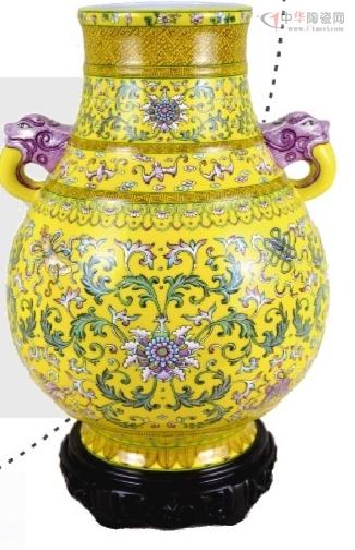 冬瓜瓶起源于清乾隆年間,是傳統(tǒng)瓷器花瓶器型之一,敞口短頸,瓶身圓潤(rùn)豐滿,因貌似冬瓜而得名。景德鎮(zhèn)燒制較多,起初為皇宮貴胄燒制。后因造型大氣,且有福如東海,壽比南山之意,受到各階層喜愛(ài)而流傳開(kāi)來(lái),成為清朝以來(lái)典型的花瓶器型。此款琺瑯彩大冬瓜瓶,是冬瓜瓶的變形,它將瓶身進(jìn)行一定比例的拉升,使得器型更顯高貴和大氣,加上瓶身上純手工繪制了象征著富貴、吉祥、幸福、繁榮的“花中之王”――牡丹,在“中國(guó)紅”地與“帝王黃”地琺瑯彩的襯托之下,彰顯出獨(dú)一無(wú)二的雍容華貴、國(guó)色天香,非常適合高檔場(chǎng)合的擺設(shè)及收藏。