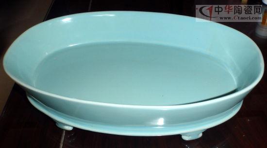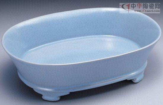 汝窯天青無文橢圓水仙盆