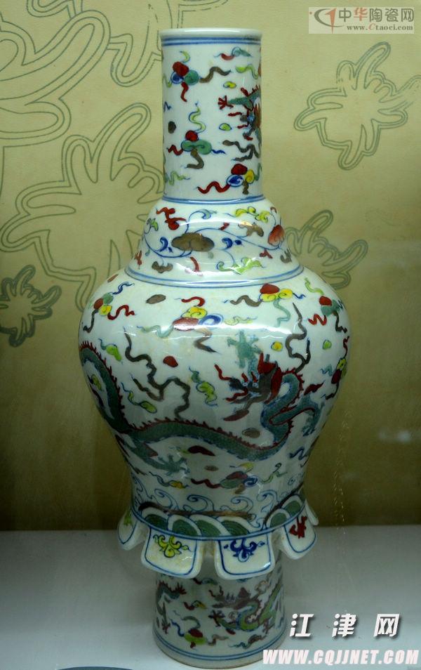 龍紋五彩瓶。