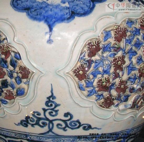 以前人們認(rèn)為開光內(nèi)花卉屬于鏤空,仔細觀察其實不是,正確的屬于模印貼塑,嚴(yán)格意義上的叫法是:元代青花釉里紅開光四季花卉貼塑蓋罐。鑒于目前發(fā)現(xiàn)的此類器物很少,就是我在景德鎮(zhèn)窯址區(qū)爬了好多年,包括國內(nèi)很多地區(qū)的建筑工地,也很少發(fā)現(xiàn)這類殘器標(biāo)本(其他類的青花釉里紅標(biāo)本有發(fā)現(xiàn))。這可能屬于同一時段燒制的作品。首先,元代青花釉里紅開光鏤雕大罐的有幾個部分是模壓成型,然后組合粘貼完成。整個過程不存在鏤雕過程。青花釉里紅燒制難度很大,青花鈷料高溫下相對穩(wěn)定,而釉里紅主要是氧化銅,高溫下很容易揮發(fā),所以要把這兩種同時燒出來,沒有一定的技術(shù)手段和成熟的燒窯經(jīng)驗,是很難完成的。這也是青花釉里紅比較少見的原因。