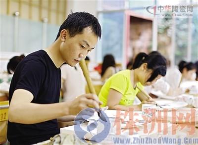 在湖南輕工高級技工學(xué)校比試點,來自企業(yè)和院校的131名陶瓷裝飾技術(shù)能手參賽。提起粗大的分水筆,選手們將墨色染料水,擠入事先勾勒好的輪廓線內(nèi),并轉(zhuǎn)動瓷盤。不出一刻鐘的功夫,原本分辨不清的一堆線條,就已清楚可見荷花的曼妙姿態(tài)了。