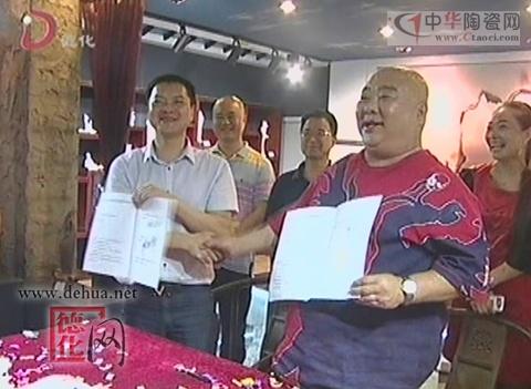 【同期聲 銘思藝陶瓷有限公司總經理 林國華:我就想以名人的效應推動德化陶瓷會比較快,代言就是包括他的肖像權,還有三年里以他名義代言所作的推廣,包括大幅廣告,包裝這一塊的,也授權來進行推廣!