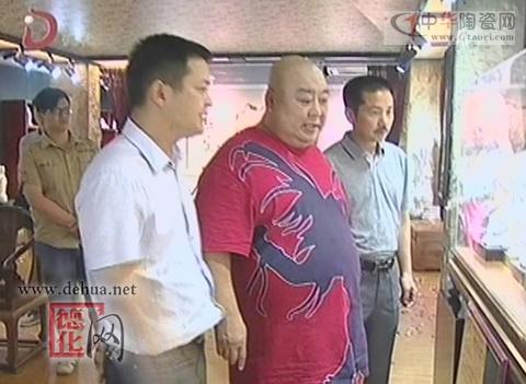 在銘思藝文化發(fā)展有限公司的陶瓷展廳內,大家紛紛拿起手機、相機拍起照來。鏡頭中的這位就是扮演李大嘴的著名演員程思寒。他身披沙曼、手握陶瓷,為我縣陶瓷企業(yè)做起了形象代言人。