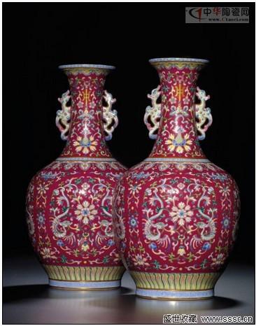 清乾隆 紫地粉彩龍紋夔耳瓶一對(duì) 以3504萬(wàn)的高價(jià)成交