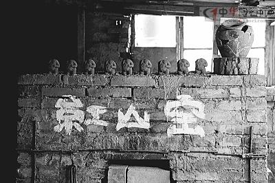 出喀左縣城,走3.5公里,到東山嘴村,有一處保存完好的新石器時代文化遺址,這里出土過三尊裸體孕婦陶塑像和大量彩陶器。這表明5000年前的紅山文化時期,當(dāng)?shù)叵让褚呀?jīng)開始用紅土燒陶了。