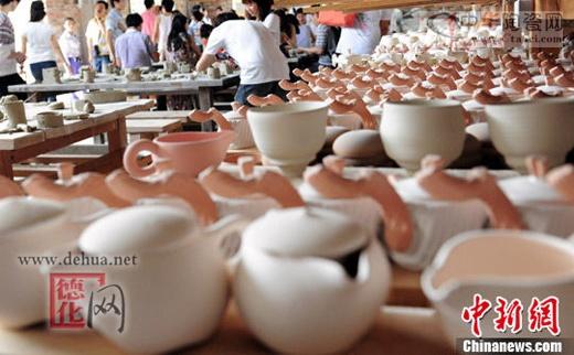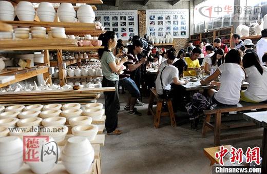 6月1日,華僑大學(xué)境外生來到中國(guó)瓷都福建德化月記窯陶瓷文化創(chuàng)意產(chǎn)業(yè)園體驗(yàn)做陶藝。中新社發(fā) 張勤 攝