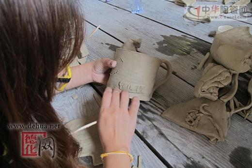 來(lái)自緬甸曼德勒的莫君珊小心翼翼地在自制陶杯上刻出“女兒珊”的字樣。