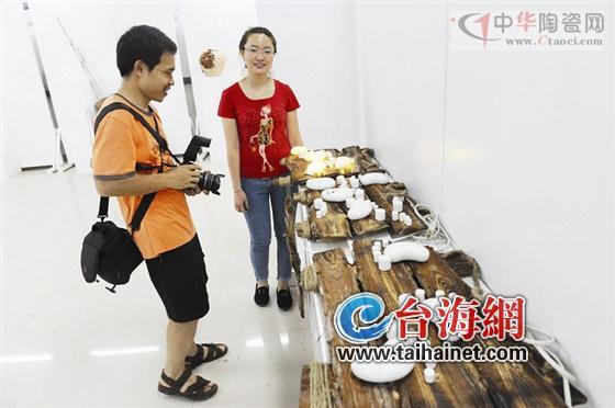 走進(jìn)展示大廳,首先映入眼簾的是11個又白又透明的精美“足形”白瓷,讓人想到泉州著名藝術(shù)家蔡國強(qiáng)在北京奧運(yùn)會的29個腳印。