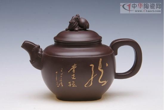 在創(chuàng)作中,程苗根先生既繼承傳統(tǒng),又不斷創(chuàng)新,作品極具時代感與藝術(shù)氣息。他創(chuàng)作的仿郵票四把紫砂珍品壺,1999年在中國民間藝術(shù)展上榮獲金獎。雙龍?zhí)崃簤兀?003年評為“中國十大紫砂名壺”。尤其值得一提的是仿古掇球壺,壺高11厘米,最大直徑10厘米,在青黑的壺體上微刻了共計(jì)8360多字的整部陸羽《茶經(jīng)》,1999年榮獲大世界基尼斯之最稱號。這款壺僅燒制四把,其中一把受中國國際茶文化研究會的委托,由原會長王家楊先生親手贈送給日本靜岡縣榛原金谷町茶鄉(xiāng)博物館作為珍品收藏。
