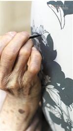 比如一個茶杯,要畫300到500個,挑選很嚴格,一點毛病都不能有,花紋要用放大鏡去照,看有沒有裂紋和瑕疵。