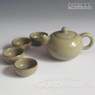 青瓷哥窯米黃釉5頭茶具-清新素雅