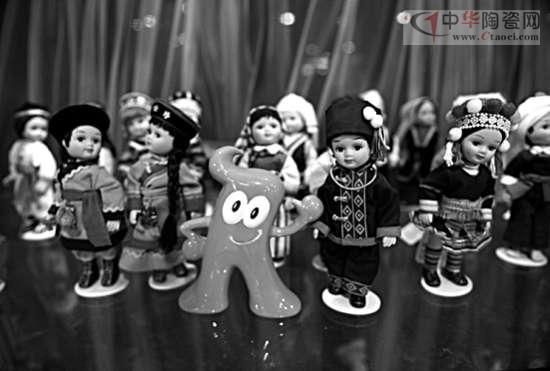 運(yùn)用中國(guó)陶瓷工藝制作而成的上海世博會(huì)吉祥物海寶和其它陶瓷“布娃娃”。