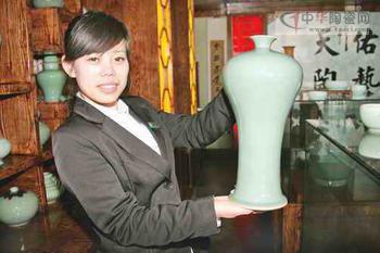 日前,記者走進喀左某陶瓷作品展廳里,立即被琳瑯滿目的青瓷所吸引。不論是碗、盤、碟、杯、執(zhí)壺、渣斗、熏爐等實用瓷,還是筆筒、筆洗、印泥盒、鎮(zhèn)紙等文具瓷,或是瓶、尊等陳設瓷,無不如冰似玉,青翠欲滴,仿佛一器之上兼得蒼天、青山、綠水、碧玉之顏色,萬般靈秀,體現(xiàn)出青瓷獨具的藝術風格和工藝特征。據陪同的中國工藝美術大師周明亮介紹,這就是享譽中外,后日臻沒落,神秘消失,如今又浴火重生的遼青瓷。