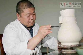 國家級工藝美術大師周明亮對遼青瓷作品進行精細加工