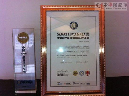(L&D陶瓷“中國500最具價(jià)值品牌”獎(jiǎng)杯及證書)