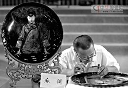陶器組的第一名王卯全埋頭在面前已經烤了一個金色底塊的十八寸陶瓷盤里,以小楷書寫著一篇《般若波羅蜜多心經》,神情專注。王卯全介紹,寫在陶瓷上的書法,所用的書寫顏料類似油漆顏料,寫起來不易。“在陶瓷上寫得好,在紙上一定寫得好;在紙上寫得好,卻不一定能在陶瓷上寫得好。”他從事陶瓷書法技藝已有30年,與臺下觀眾分享自己這些年的心路歷程時,他說:“我喜歡陶瓷書法,我熱愛陶瓷書法,既熱愛又能從事這項事業(yè),我覺得我是幸福的。”當主持人提及他現在獲得的榮譽時,他認為除了熱愛,還有“就是堅持,堅持就是勝利。”王卯全還鼓勵臺下的觀眾,“我希望每一位朋友,無論你做什么,只要堅持,就一定能有所收獲。”臺下掌聲響起。