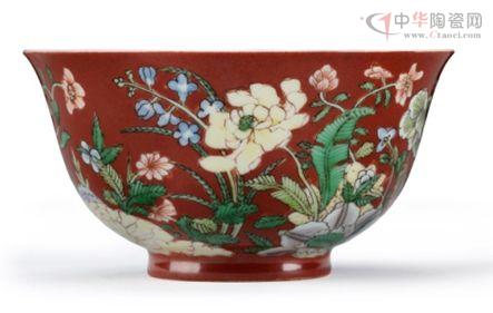 在當(dāng)前拍賣市場中,清三代瓷器的價格已遠(yuǎn)遠(yuǎn)超過宋代官窯中的定窯和鈞窯。本場盈時拍賣相當(dāng)難得地集齊了清三代代表官窯之重器,件件珍罕,包括了清康熙年制“珊瑚紅地五彩九秋同慶圖御制碗”,為康熙時期清宮御瓷之精品佳作。