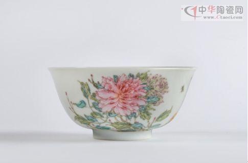 清雍正 粉彩牡丹紋碗 直俓: 11.3公分
