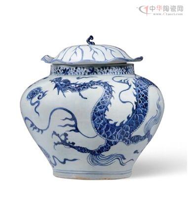 元代是中國陶瓷史上的一個重要時期,本場拍品中的“青花龍紋蓋罐”,器形沉穩(wěn),線條剛勁。所施白釉白中泛青,晶瑩透亮,青花發(fā)色濃艷,鐵斑凝聚,深入胎骨。所繪龍紋風(fēng)格與英國大維德藝術(shù)基金會所藏元至正十一年青花大瓶上的龍紋畫法、神態(tài)一致,此類傳世元青花大罐荷葉蓋多已遺失,而作品保存完好,更顯難得珍貴。