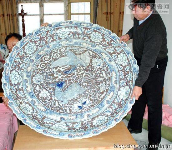 看了冀寶齋收藏的古瓷器,給人的第一感覺(jué)除了震驚之外,用任何語(yǔ)言形容都顯得蒼白。真想不到那些只有在大博物館和電視畫(huà)面上及圖片中才能看到的瓷器珍品,突然間會(huì)一起展現(xiàn)在眼前并且伸手可及,實(shí)在是讓人久久回不過(guò)神來(lái)。規(guī)整碩大、風(fēng)格豪放的元代青花、釉里紅等,彰顯著昔日大元帝國(guó)的王者之風(fēng);明代的五彩、斗彩和清代的粉彩、琺瑯彩等,器型眾多,異彩紛呈,令人目不瑕接,眼界大開(kāi);一件元代青花釉里紅留白葵口大盤(pán),直徑達(dá)148厘米,器型之巨、釉色之潤(rùn)、圖案之美用"無(wú)與倫比"稱之實(shí)不為過(guò)。一個(gè)大明宣德年間的青花釉里紅龍紋大缸高56厘米,上口直徑43厘米,底足直徑40厘米,繞缸云卷龍騰,大氣磅礴,凸顯著皇家的威嚴(yán)和至尊;清三代的各種官器更是匠心獨(dú)運(yùn)、精美至極。