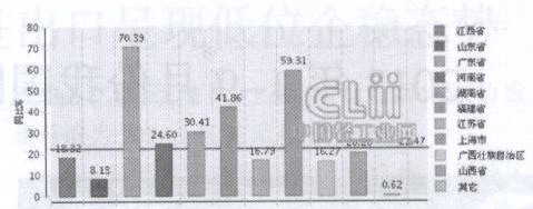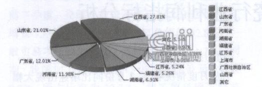 2013年1-9月陶瓷行業(yè)完成利潤總額前四位的地區(qū)一次是江西、山東、廣東、河南,其中江西累計完成利潤總額同比增長18.32%,占27.81%;山東累計同比增長8.13%,占21.01%。詳見圖4.