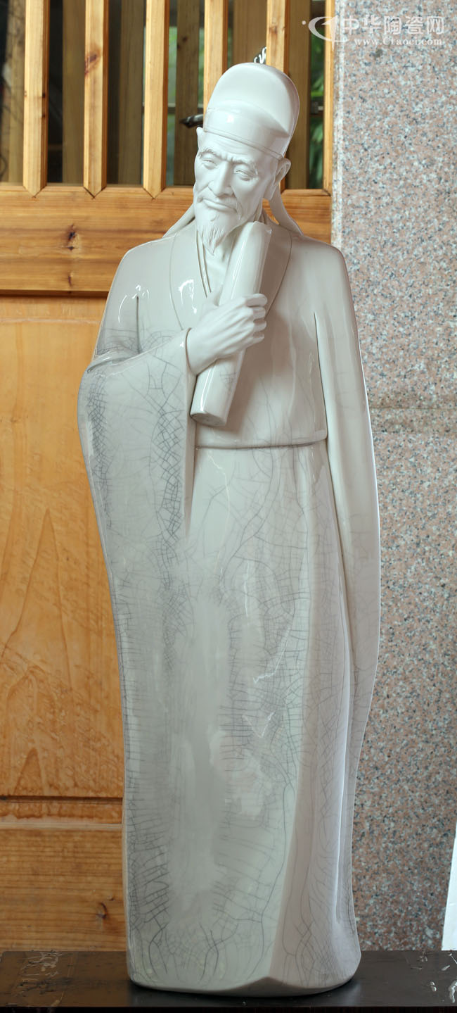 林建勝連續(xù)不斷地從事瓷塑藝術(shù)研究長達(dá)30多年,既有高超的手頭功夫,又有深厚的理論修養(yǎng)。他的作品以潔白、純凈、圓融、飽滿的德化白瓷為載體,再現(xiàn)壯健、自由、自信的漢風(fēng)唐韻,作品或厚重穩(wěn)健,或圓滿大氣,或自由飄逸,或雍容華貴,凸顯強(qiáng)者精神與盛世情懷。他之所以有較高的藝術(shù)造詣,是因?yàn)樗麖闹袑5酱髮T俚角迦A美院不斷的學(xué)習(xí)深造,從中專教師到大學(xué)兼職教授20多年的教學(xué)歷練,從德化傳統(tǒng)工藝美術(shù)大師到大學(xué)美術(shù)教授的雙重師承,從工藝實(shí)踐、技能技藝到理論研究、學(xué)術(shù)研究的全方位提升。