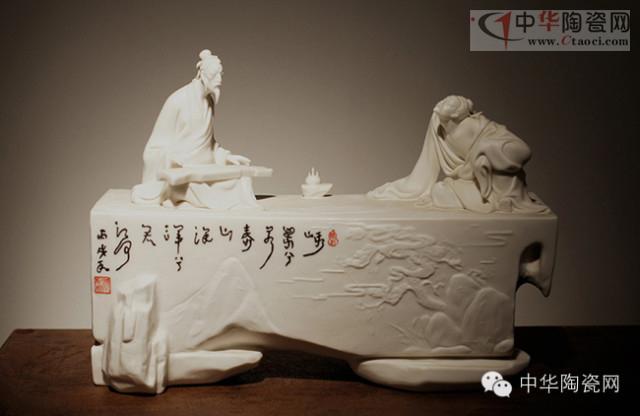 初次見到顏松柳,斯文、從容,微笑中散發(fā)著平和恬淡的儒雅。作為德化瓷雕的中堅力量,其作品在傳統(tǒng)工藝的基礎(chǔ)上加以豐富的想象力,極富創(chuàng)意,韻味十足,備受市場青睞。這位瓷壇后起之秀不但引起業(yè)界的關(guān)注,還曾榮獲“中國收藏家喜歡的陶瓷藝術(shù)大師”的榮譽稱號。他的作品《春風(fēng)得意馬蹄急》收藏于中國美術(shù)館、英國珍寶博物館;《一葦渡江》收藏于英國珍寶博物館、福建博物院。值得一提的是,與他人合作的大形組雕《召見使節(jié)》和《唐韻仕女》被西安市政府選為珍貴禮品贈予國民黨榮譽主席連戰(zhàn)和親民黨主席宋楚瑜。