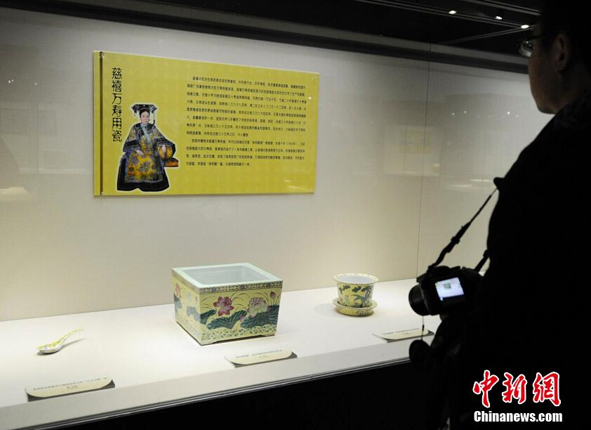 12月31日,由偽滿皇宮博物院與故宮博物院聯(lián)合舉辦的《另類奢華—故宮藏慈禧瓷器展》在長(zhǎng)春開展。據(jù)了解,展覽從故宮博物館所藏清代同治、光緒時(shí)期瓷器中遴選出具有代表性的官窯精品100件(套),分為“同治大婚用瓷”、“慈禧萬壽用瓷”、“慈禧生活用瓷”三部分。張瑤 攝
