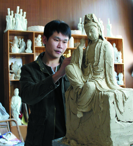 他是林吉祥,1985年出生在德化縣雷峰鎮(zhèn)朱紫村,剛剛步入而立之年的他結緣瓷雕卻已有15年。