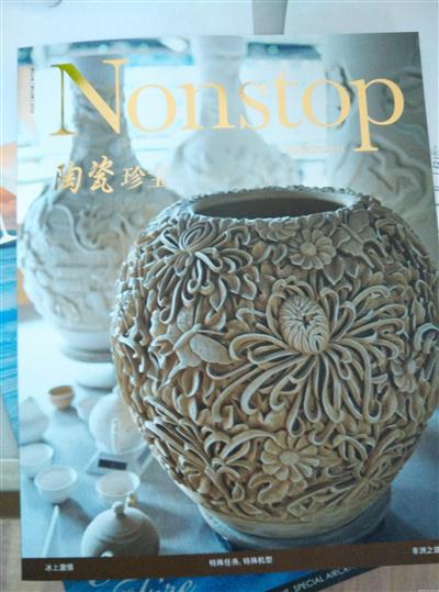 據(jù)了解,《Nonstop》是美國灣流宇航公司最早發(fā)行的雜志,專為灣流飛機所有者、私人飛機旅客和航空高管創(chuàng)辦的。“去年4月底時,《Nonstop》雜志社的代表來到景德鎮(zhèn)探訪陶瓷文化,先后采訪了古窯、陶藝家和陶瓷企業(yè)。”市陶瓷工業(yè)發(fā)展局招商辦科員吳莉娜稱,《Nonstop》雜志對景德鎮(zhèn)的陶瓷文化贊譽很高,他們與陶藝家們親切交談,對話景德鎮(zhèn)陶瓷歷史,深度挖掘傳統(tǒng)制瓷工藝。