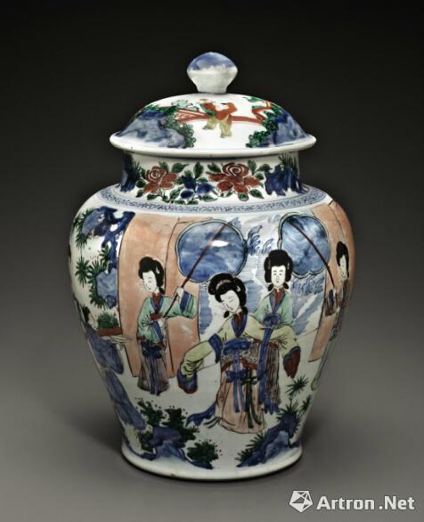 LOT 3539 明末清初 十七世紀(jì)中葉 五彩仕女圖蓋罐 高47.6厘米