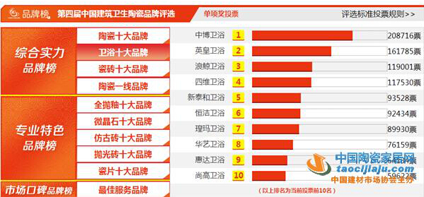 第四屆中國(guó)陶瓷榜陶瓷十大品牌投票頁(yè)面截圖