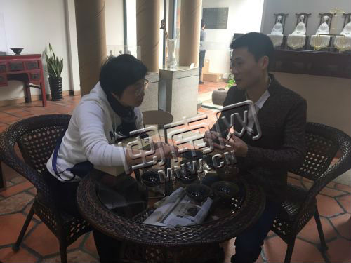 蘇獻(xiàn)忠是中國瓷都德化唯一百年老字號(hào)“蘊(yùn)玉瓷莊”第四代傳人。他早前也接觸過建盞。他說,黑瓷和白瓷的燒制時(shí)間、方法不同,在工藝、材料、燒制等問題上還要斟酌、研究。他表示,如果時(shí)機(jī)恰當(dāng),又碰到好的題材,可以嘗試“黑白”跨界合作。(閩南網(wǎng)記者陳玉玲 文/圖)