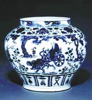 二、元青花鬼谷下山大罐(2.3億元),2005年倫敦佳士得拍賣成交的天價(jià)藝術(shù)品。如下圖: