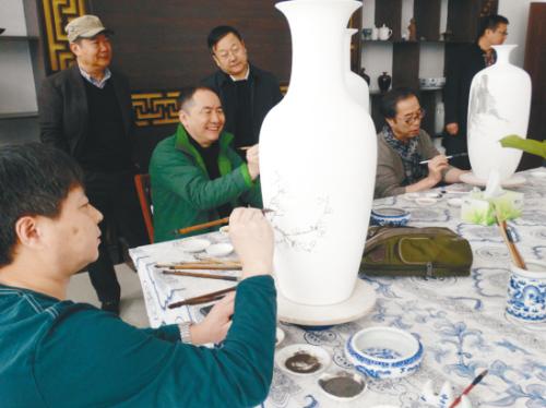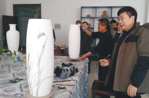 3月26日,遼寧畫院法庫(kù)陶瓷藝術(shù)創(chuàng)作基地揭牌,戴都都、崔曉柏等國(guó)內(nèi)知名畫家現(xiàn)場(chǎng)在精品陶瓷上揮毫潑墨,一幅幅“山水畫”栩栩如生。