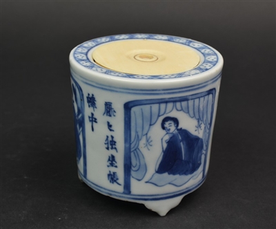 清康熙 青花童子詩文香爐