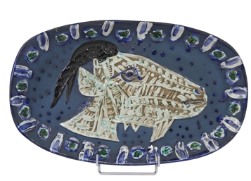 畢加索不斷試驗,試驗鈷藍色、銅綠色、紫羅蘭色和品種繁多的琺瑯, 他打破傳統(tǒng)的制陶模式, 直到1973年去世,他都在進行陶瓷創(chuàng)作。這把他在英國的經(jīng)紀人氣壞了,他不明白為什么這位在繪畫方面如此盛名的大師會跑去法國當(dāng)陶瓷學(xué)徒,其實,晚年的畢加索在陶瓷上找到了新的靈感,陶瓷為他開啟了藝術(shù)生涯的另一個復(fù)興時期。